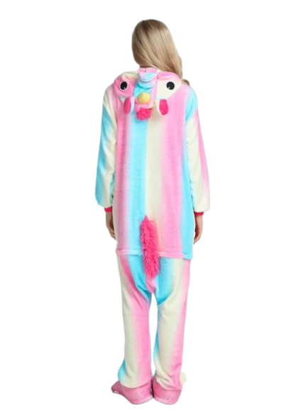 Vous trouverez forcément celle qui vous correspond car nous avons un large choix de combinaison autant en couleurs : du bleu et rose pastel à la multicolore flashy en passant par celle arc en ciel ou étoilée. Les détails ne sont pas des moindres non plus : corne sur la capuche, crinière et queue assorties pour une touche kawaii.