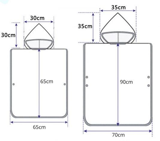 Tu trouveras également des peignoirs sans manches, avec capuche, pour l'été, la plage, la piscine style poncho.